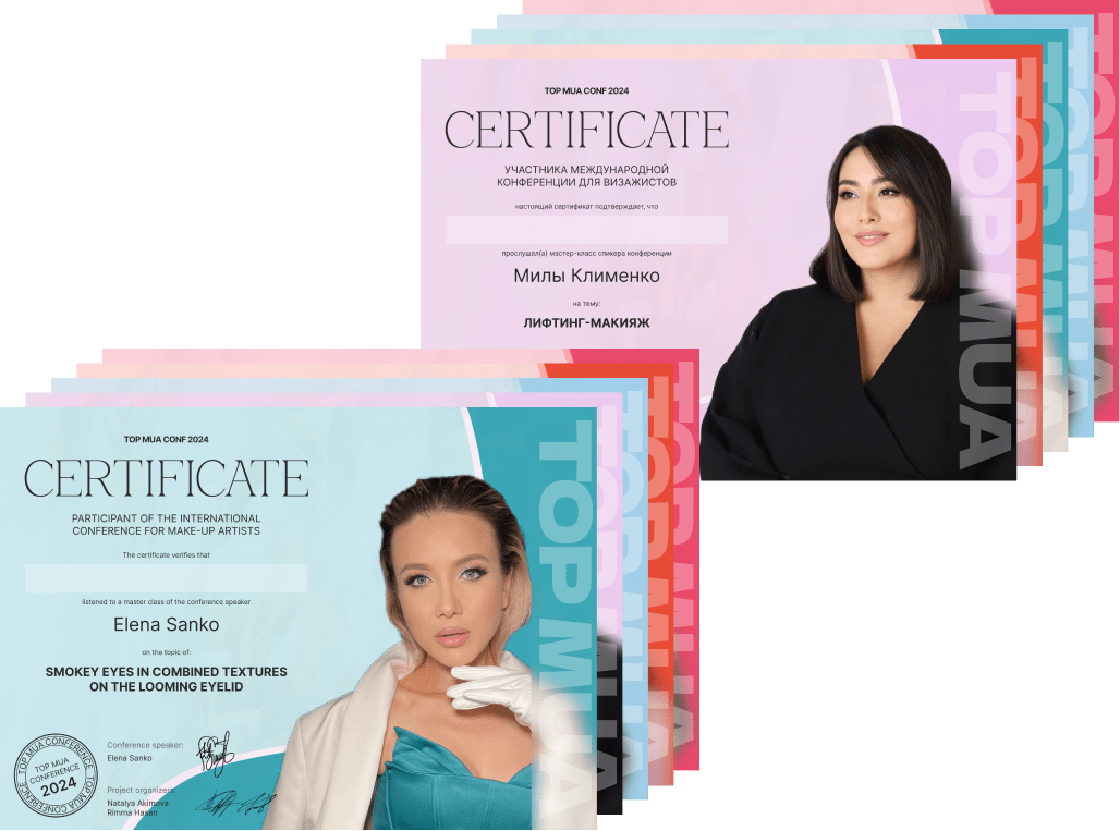 • Именной международный сертификат TOP MUA на русском и английском языках