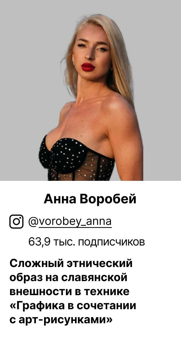 • Участие в рейтинге ТОП-100 лучших визажистов в TOP MUA AWARDS 2024